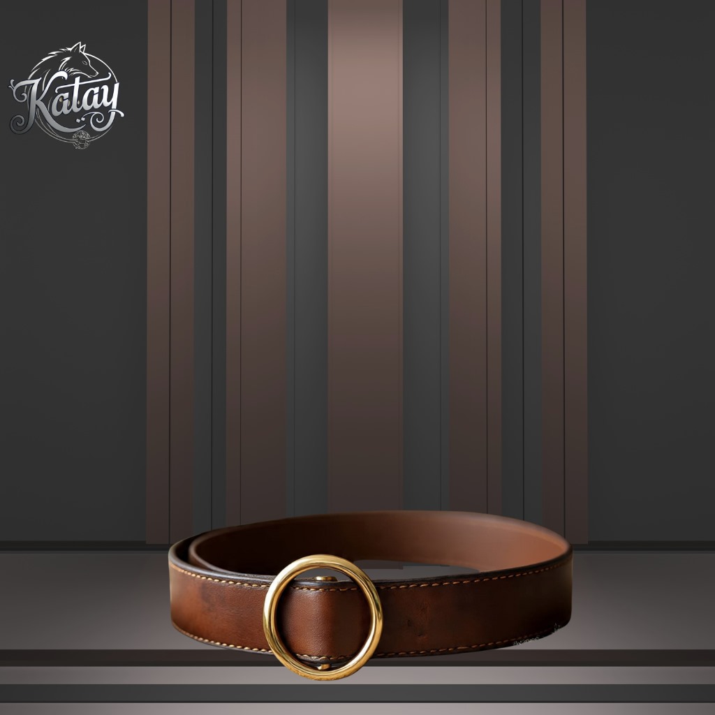 A statement in minimalist elegance. The Eternity Belt is crafted from rich, genuine brown leather and is defined by its striking, polished gold-tone O-ring buckle. This versatile accessory is the perfect finishing touch, designed to cinch a waist or elevate your favorite denim with a touch of modern sophistication.